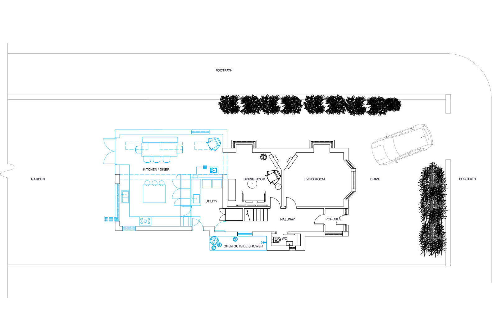 Residential design and planning approval drawings for a four bedroom property on the Kent coast.