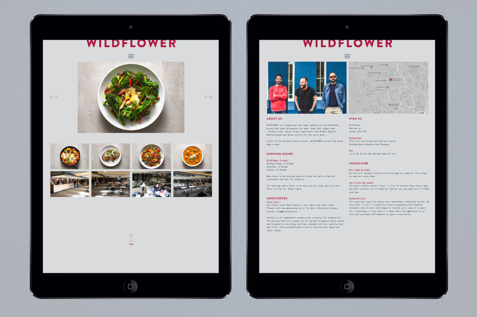 Both brands incorporate this split nature with offset imagery and logos, each with its own distinct look and feel. The concrete environment also features in the brand imagery in both. A feature was made of the ceiling structure incorporating changeable colour lights and hanging planting to enhance and change the mood across both canteen and live venue.
